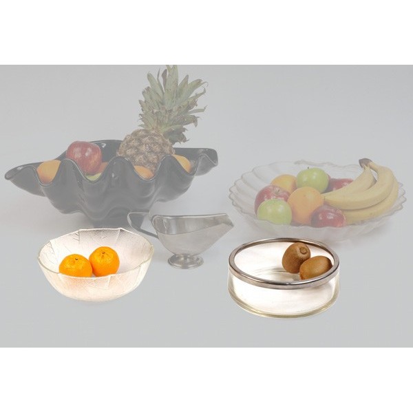 Elegantes ensaladeras de vidrio con aro metálico y de vidrio labrado. Excelentes para una presentación destacada con un toque de distinción en la mesa.